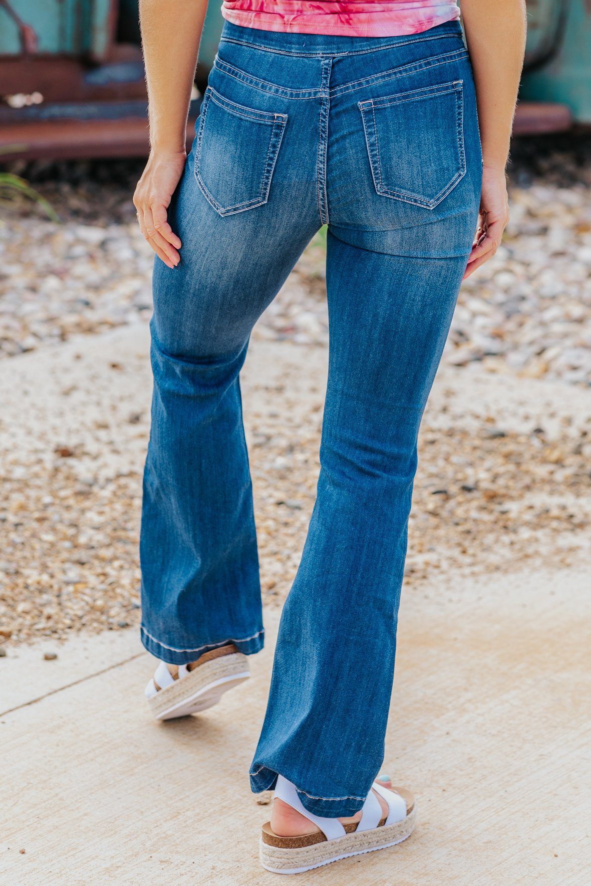 Char Cello Mid Rise Dark Wash Flare Jeggings