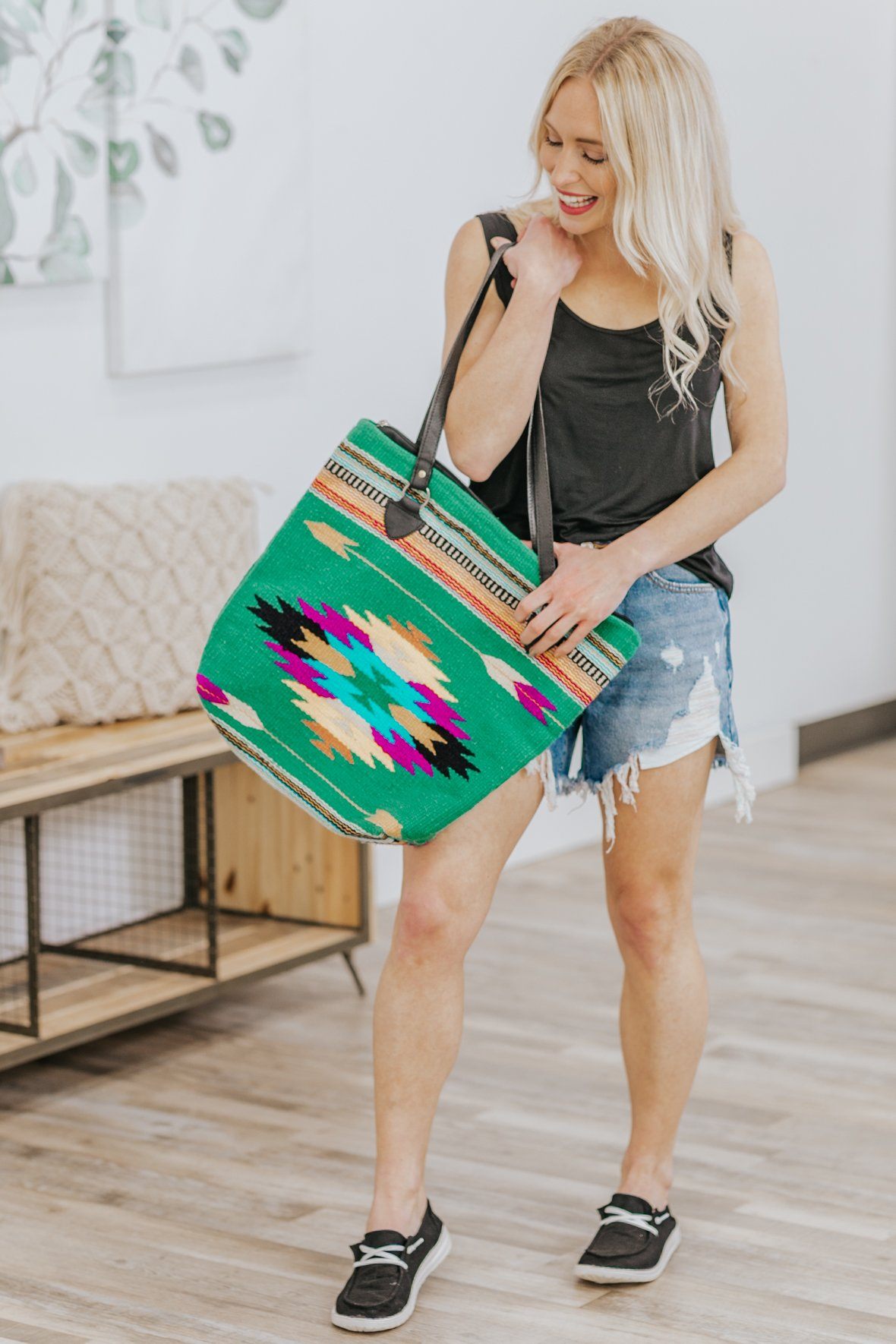 Country Weekend Aztec Print Zip Up Tote in Jade