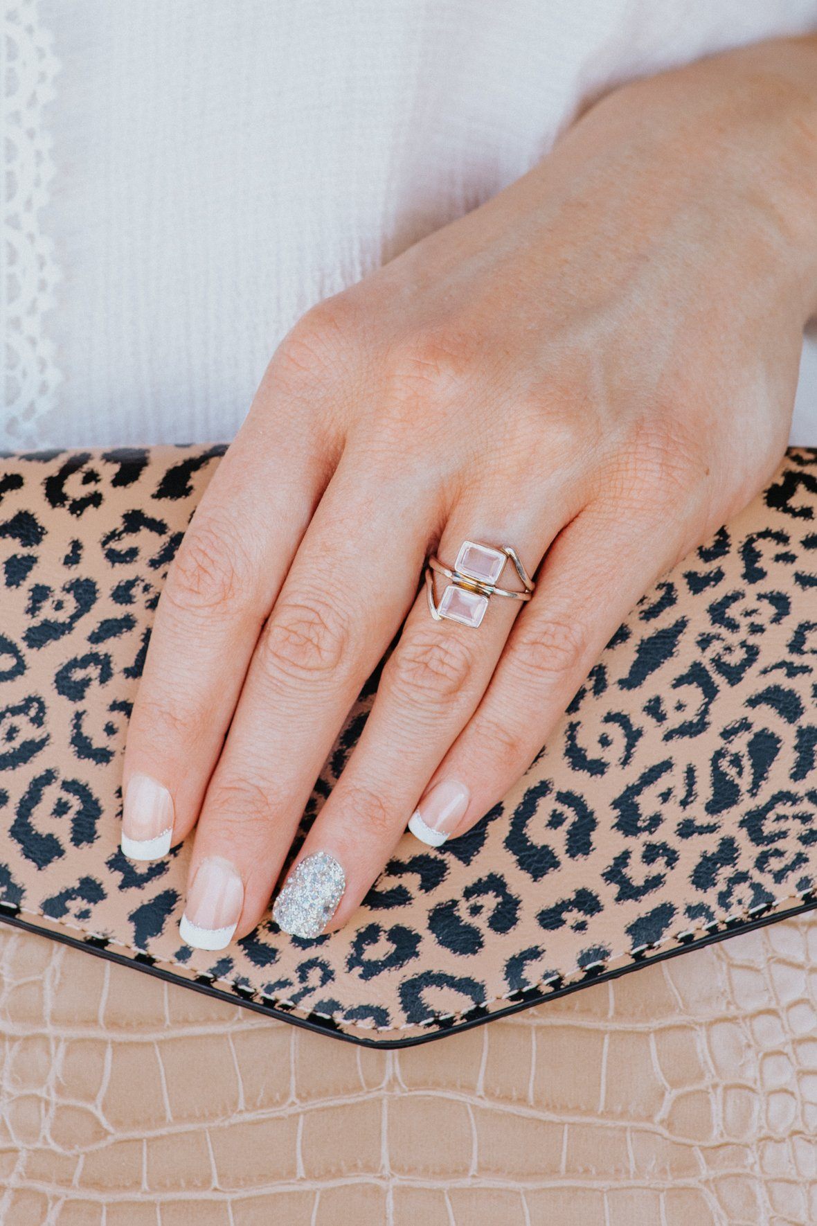 Rose Quartz Two Stone Sterling Silver Ring